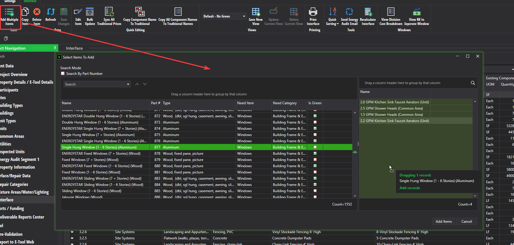 - Once you have all of your components selected, simply click the Add Items button. The interface will be populated with the items as new items.